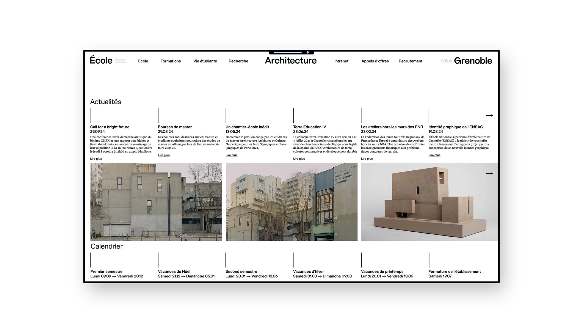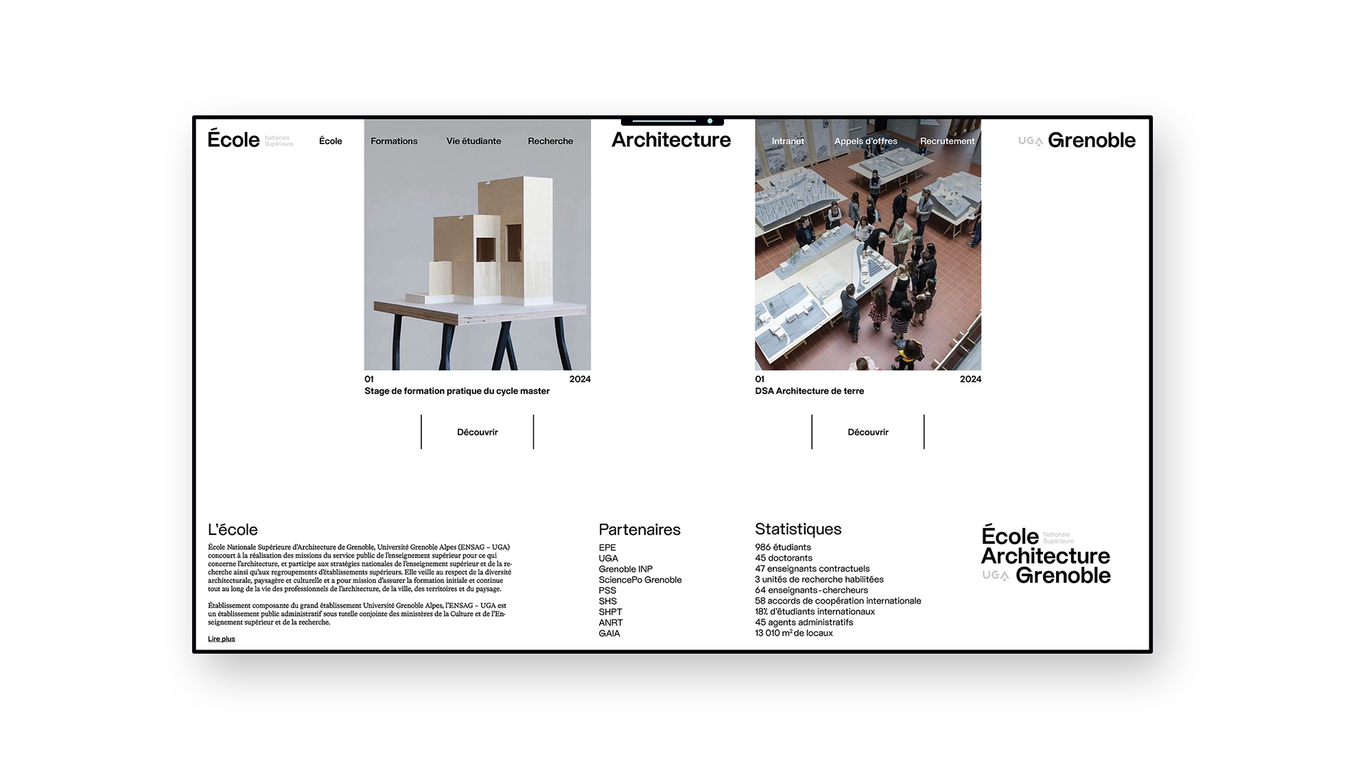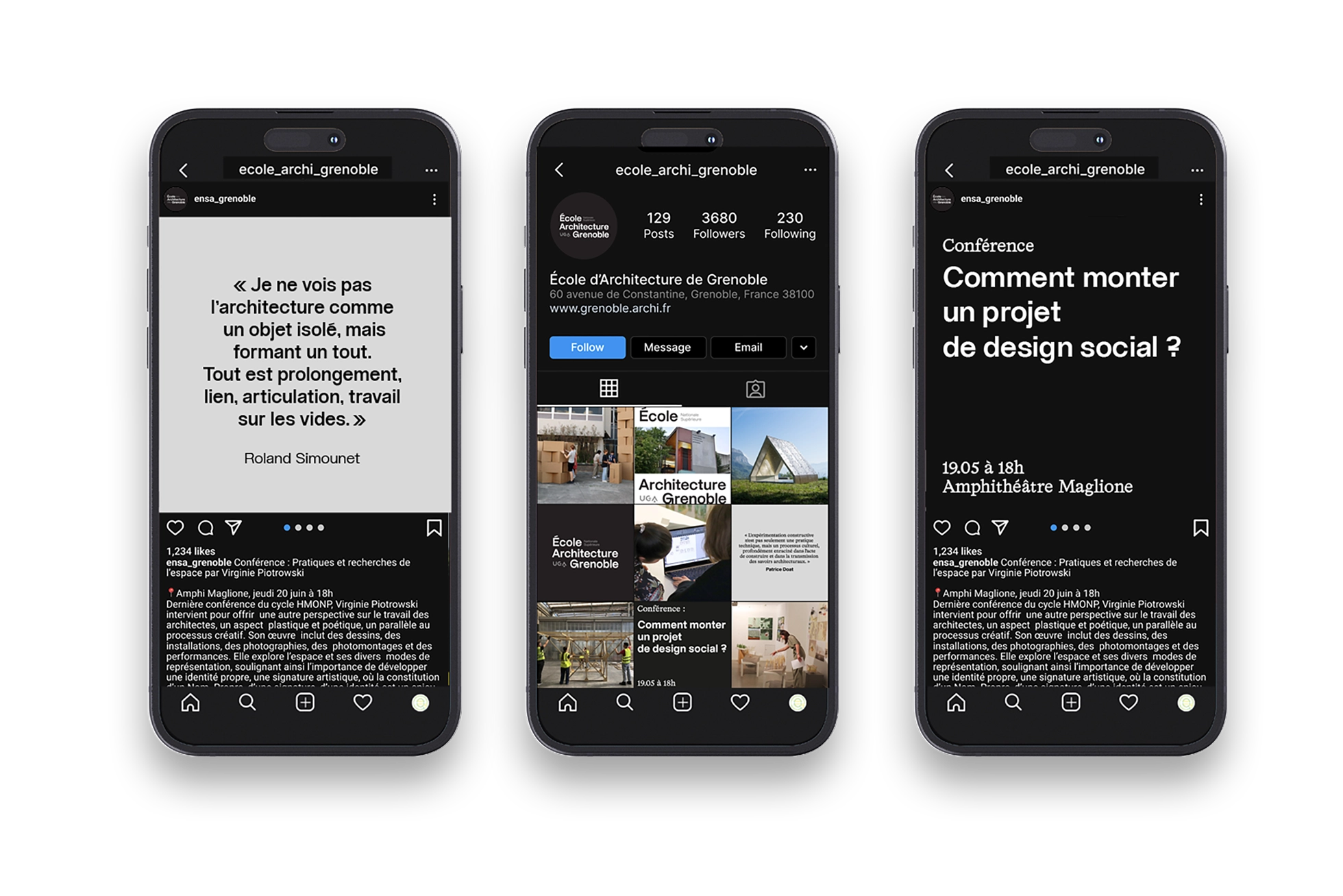 Cette année, j’ai aidé l’École Nationale Supérieure d’Architecture de Grenoble à repenser son identité lorsqu’elle a rejoint le réseau UGA, Université Grenoble Alpes.