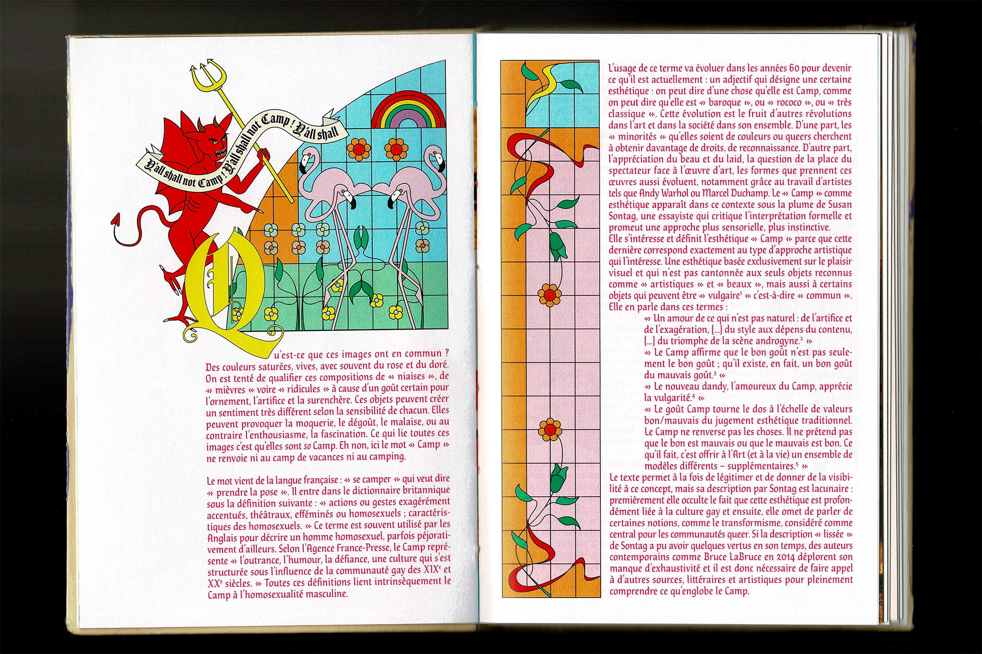 Camp ? Le mot vient du français « se camper », qui signifie « prendre la pose ». Il est entré dans le dictionnaire britannique avec la définition suivante : « actions ou gestes exagérément accentués, théâtraux, efféminés ou homosexuels ; caractéristiques des homosexuels. » L’exagération et la saturation d’un style particulier, la prévalence de l’artifice qui met le contenu et le sens entre guillemets, le désengagement et la théâtralisation de l’expérience — tous ces éléments peuvent nous amener à considérer une œuvre comme Camp. Cette étude interroge les dynamiques intracommunautaires et la manière dont ces mécanismes peuvent être reproduits dans le marketing.