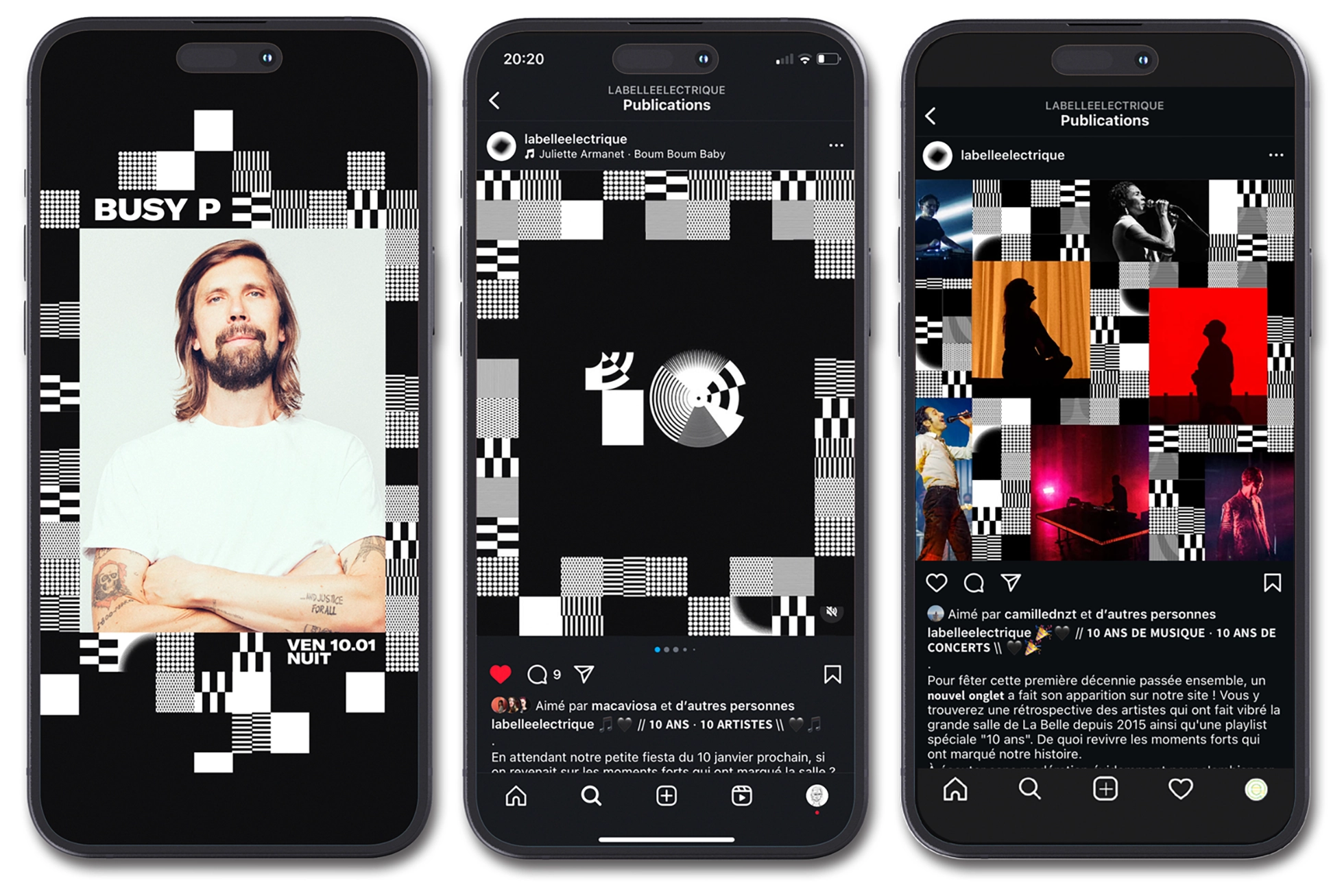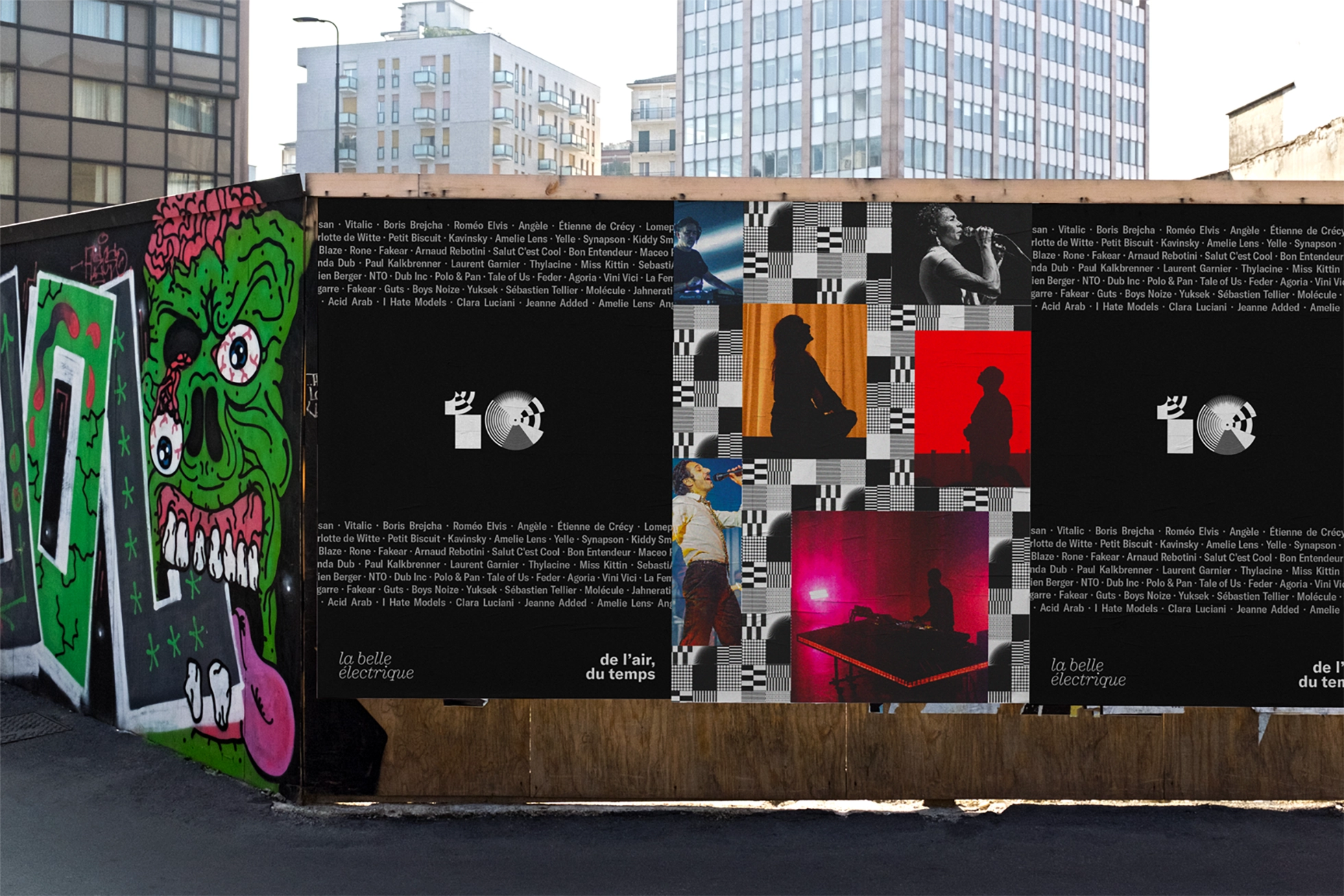 La Belle Électrique est un lieu vivant, une salle de concert et un centre culturel qui propose une large gamme d’activités aux habitants de Grenoble. Pour son 10ᵉ anniversaire, nous avons conçu une campagne de communication articulée autour d’un « 10 » graphique, symbole de la richesse, des souvenirs et des expériences partagés par le public, l’équipe et ses collaborateurs. La campagne a été déployée avec ingéniosité dans toute la ville et au sein du lieu, à travers les supports imprimés et numériques, afin d’inviter le plus grand nombre à célébrer une décennie d’émotions, de musique et de rencontres… En somme, 10 ans ensemble.