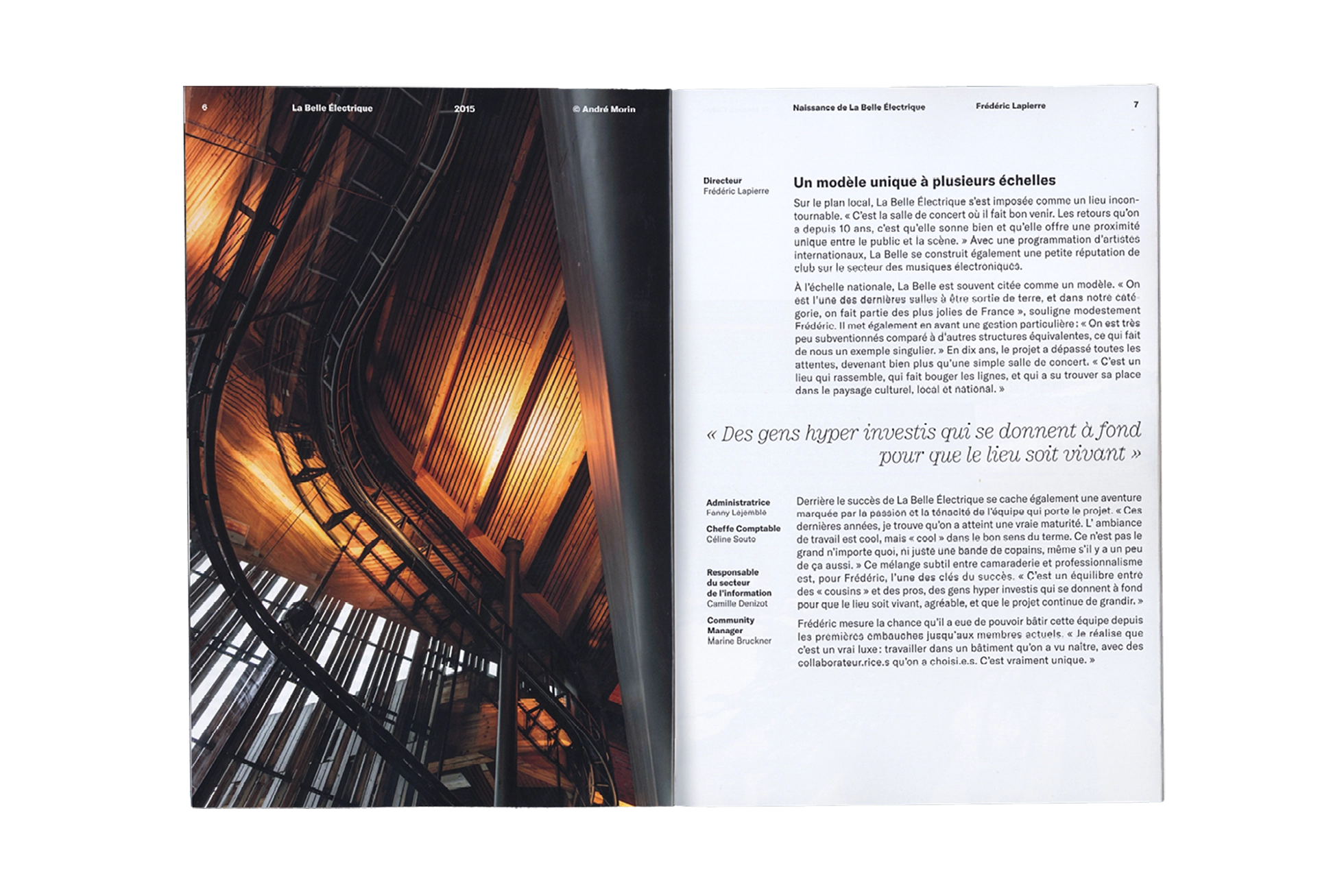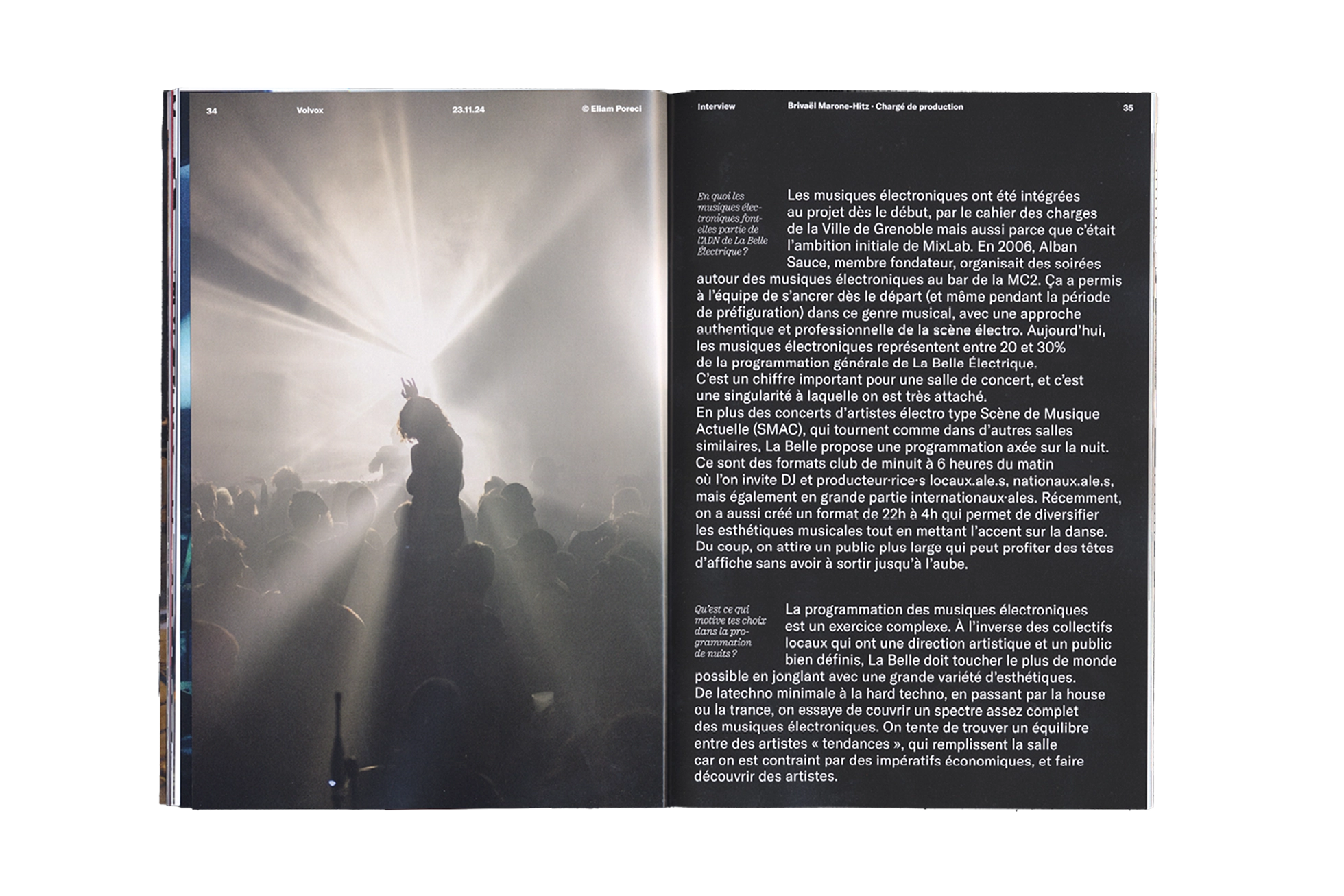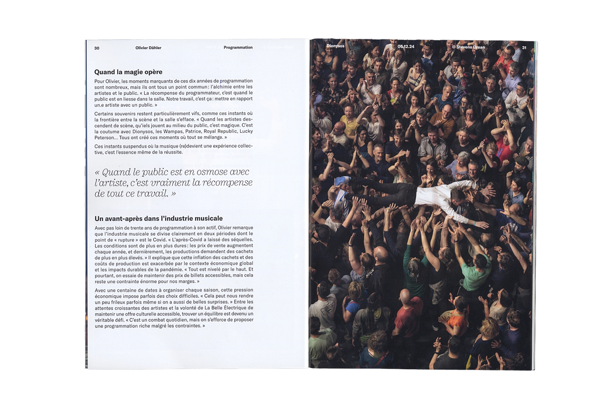 Une édition spéciale imaginée à l’occasion des dix ans de La Belle Électrique. Ce magazine retrace l’histoire du lieu à travers les souvenirs, les voix et les regards de celles et ceux qui l’ont fait vivre. On y retrouve des interviews de l’équipe, d’artistes, de partenaires et de membres du public, des archives visuelles, ainsi qu’un aperçu de l’impact culturel et social de La Belle sur la scène grenobloise. Pensé comme un objet à la fois mémoire et célébration, le magazine met en lumière dix années d’engagement, de musique et de partage.