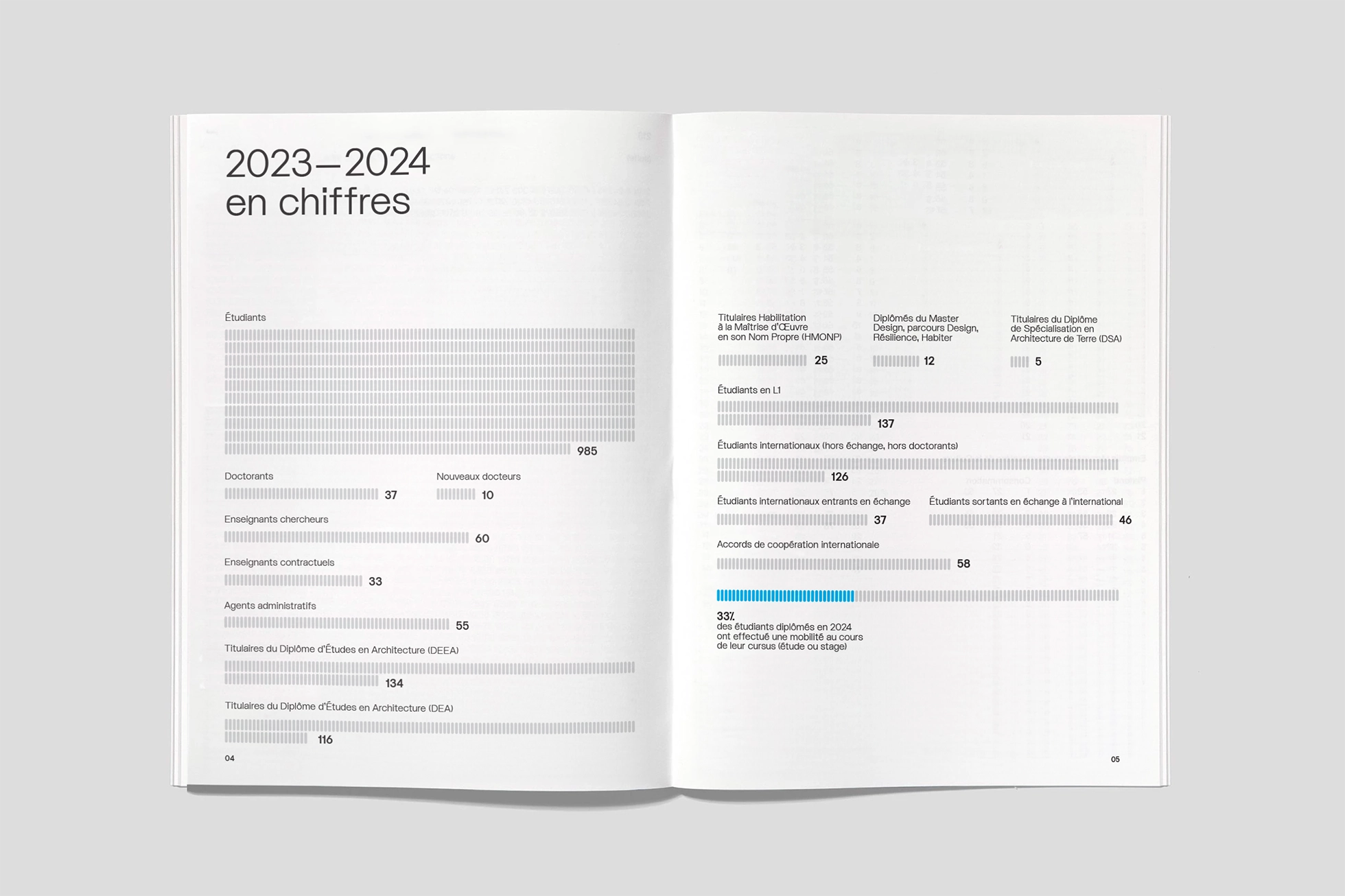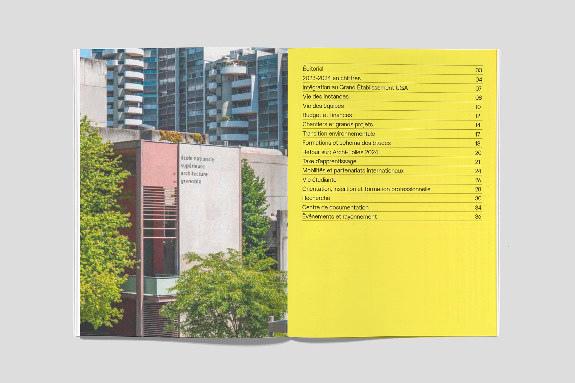 Collaboration avec l’École Nationale Supérieure d’Architecture de Grenoble pour la conception et la mise en page de son rapport d’activité 2024–2025. L’objet éditorial met en valeur la richesse des projets de recherche et pédagogiques menés par l’école, en soulignant la diversité de ses approches et de ses partenariats.